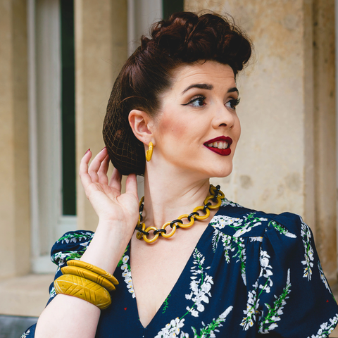A nod to the elegance of the past, the Midas Double Brooch features two golden round shapes joined by a silver-tone chain. The gold sheen in the resin adds a subtle sparkle, making this brooch a versatile piece to dress up lapels, necklines or even knitwear.