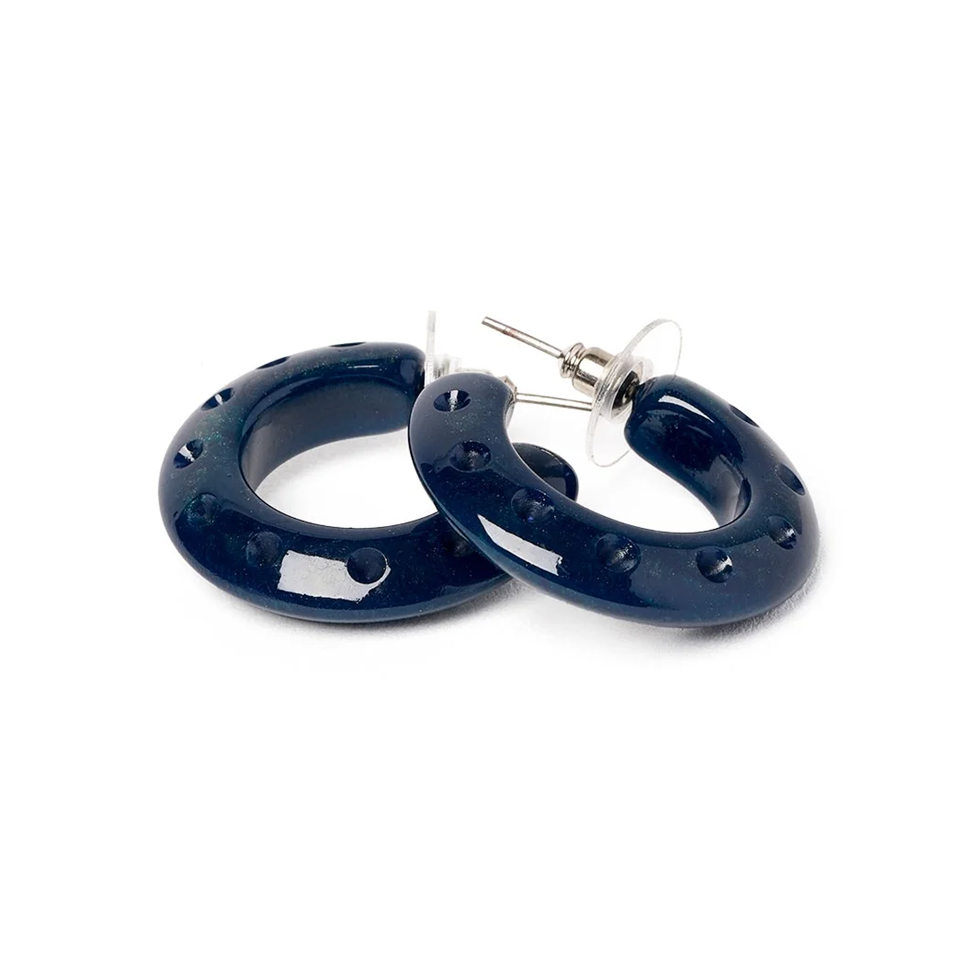 The Nocturne Double Brooch is pure Deco glamour. Two round navy and black resin clips are linked by a silver-tone chain and shimmer with subtle gold for a darkly elegant finishing touch.