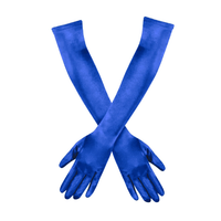 Blue above elbow stretch satin gloves are a statement piece for a special event, or the perfect tease piece for your Burlesque or Drag performers. They are 50cm (20in.) in length, pull-on over the elbows, with a light fitting elastic band. 90% Polyester, 10% Spandex.